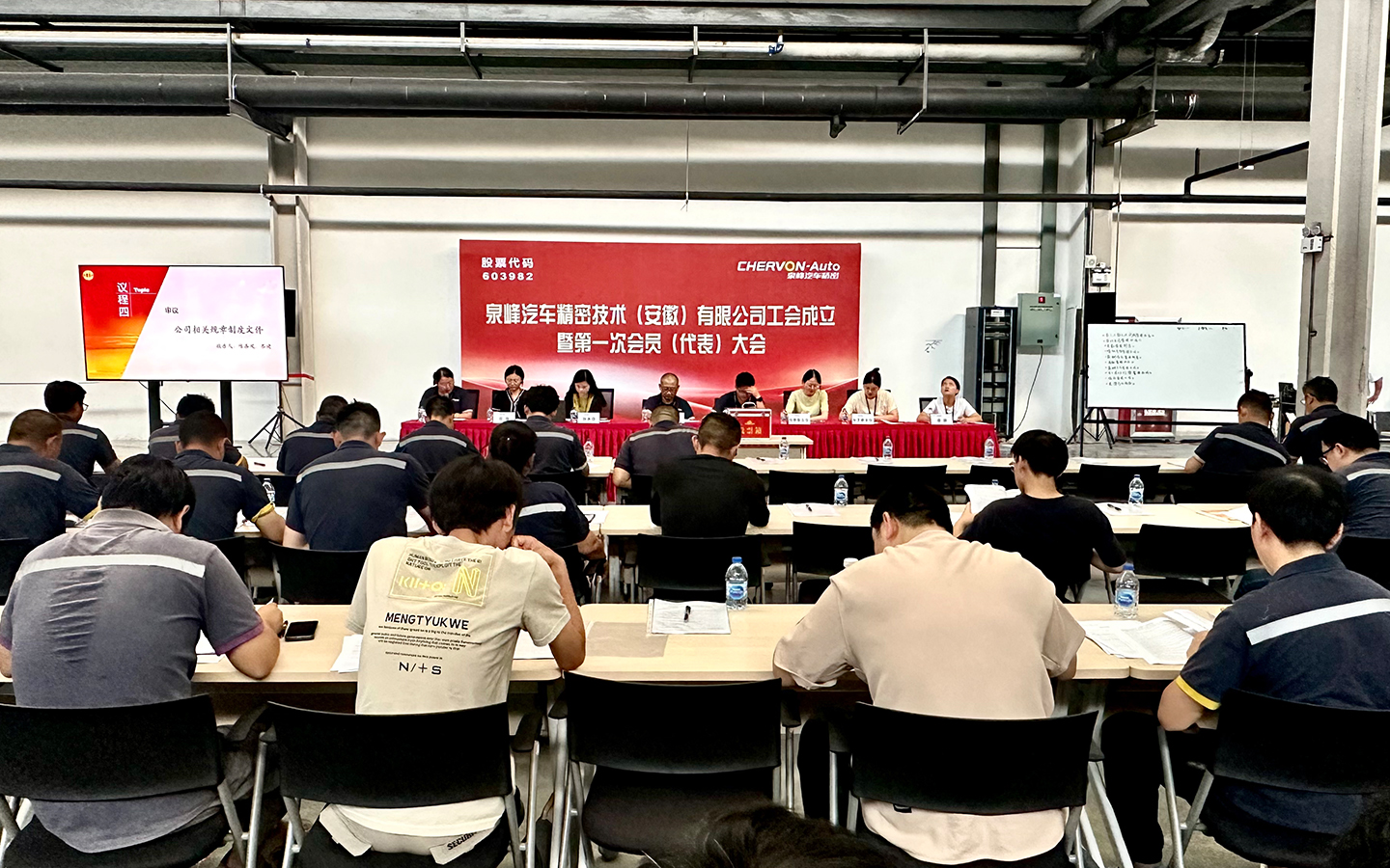 2023年8月11日下午,泉峰汽車精密技術(shù)(安徽)有限公司工會(huì)成立暨第一次會(huì)員(代表)大會(huì)在馬鞍山廠區(qū)機(jī)加車間順利召開,來自公司基層各個(gè)條線的48名職工代表、17名列席代表參加會(huì)議。